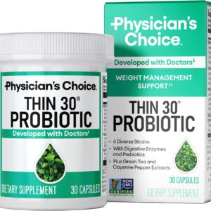 Physician’s CHOICE Probiotics for Weight Management & Bloating – 6 Probiotic Strains – Prebiotics – Key ingredient Cayenne – Supports Gut Health – Weight Management for Women & Men – Green Tea – 30 CT