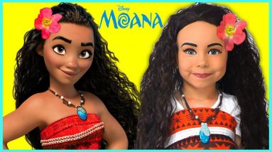 DISNEY MOANA MAKEUP Tutorial for Kids & Costume Disney Princess Alisa Pretend Play with Toy and Doll