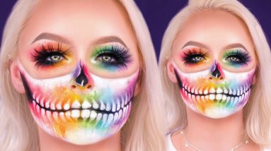 RAINBOW WATERCOLOR SKULL PRIDE MAKEUP TUTORIAL | mcdrew