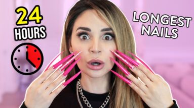 WEARING SUPER LONG ACRYLIC NAILS For 24 Hours Challenge!
